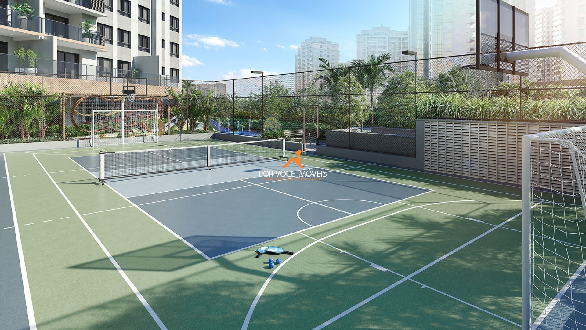 • Quadra de tênis, quadra de areia e quadra poliesportiva