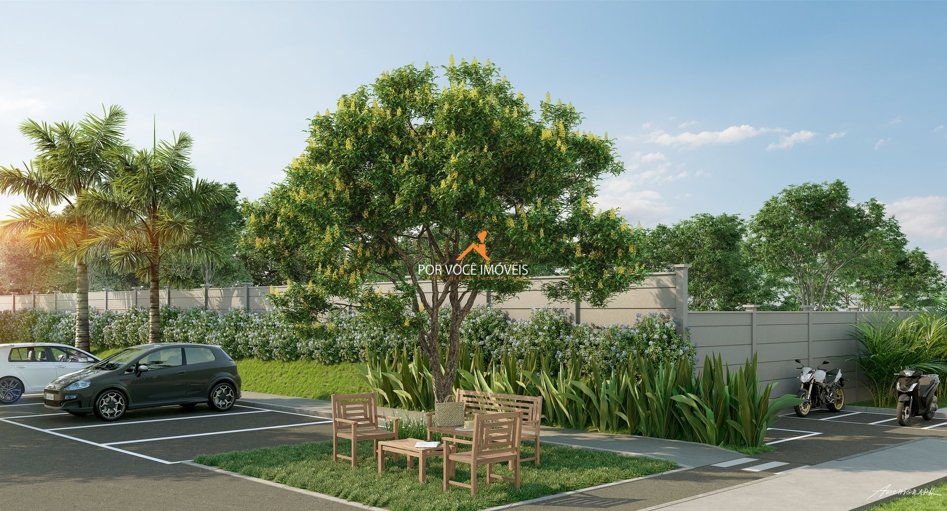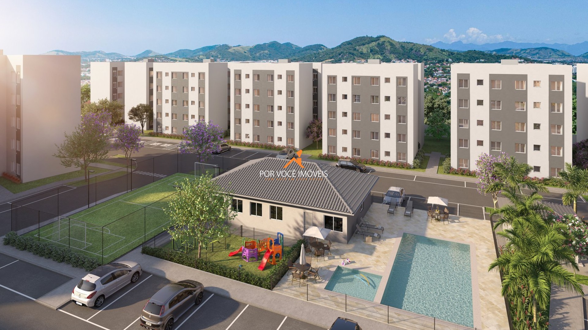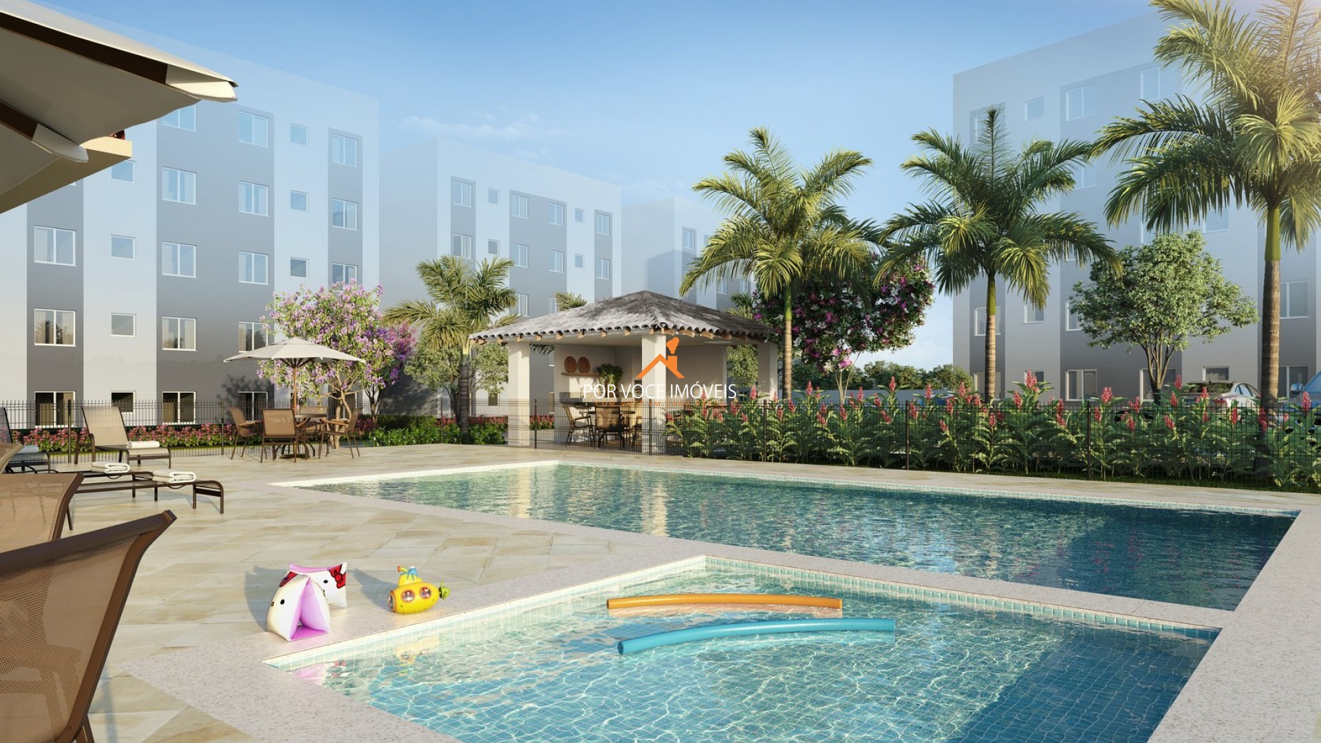 Projetado pela Construtora Novolar, o residencial se destaca pelo conceito clube e pela presença de facilidades que tornam a rotina mais confortável, sem abrir mão da segurança e da organização de um condomínio fechado.