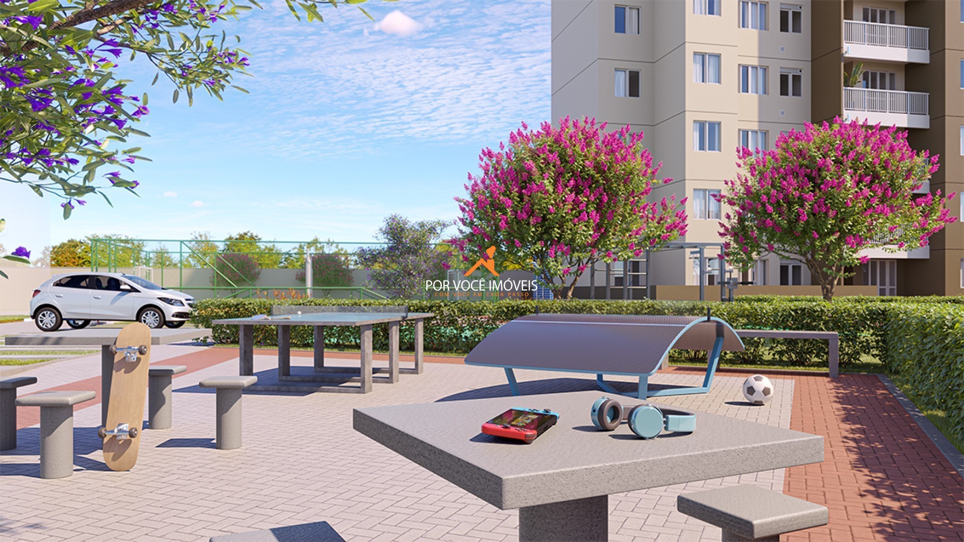 A segurança é reforçada com portaria e controle de acesso, garantindo organização e tranquilidade no dia a dia.