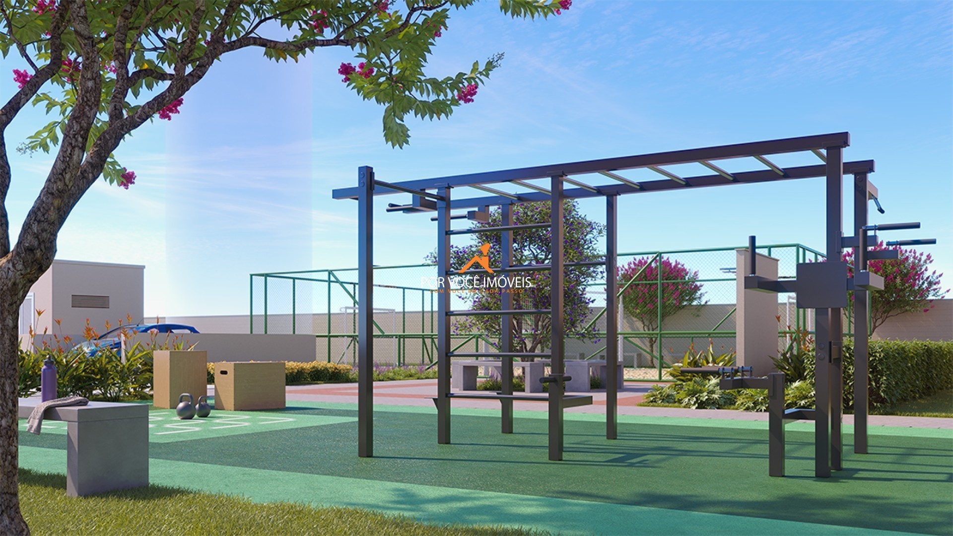 Conta com playground para as crianças e espaço fitness para a prática de atividades físicas.