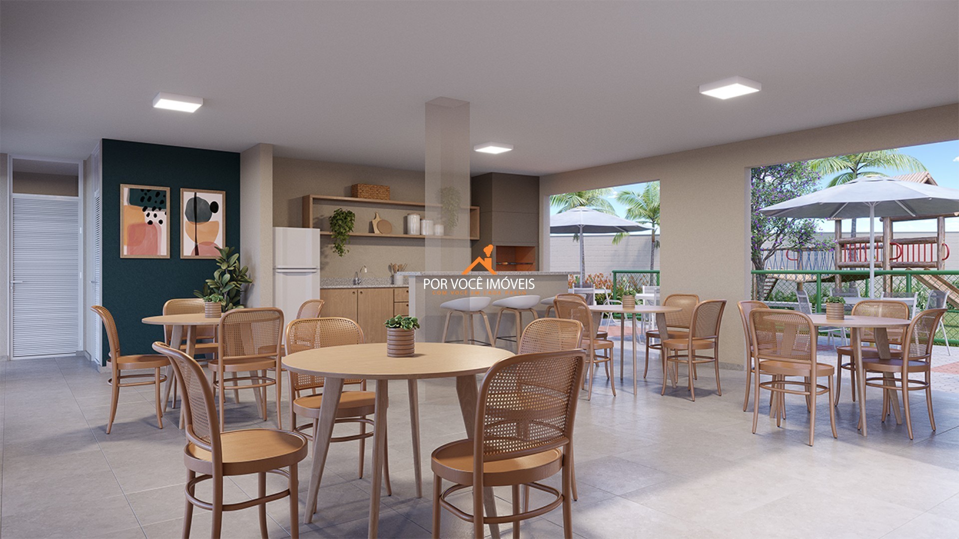 Possui espaço gourmet com churrasqueira, ideal para encontros entre amigos e familiares.