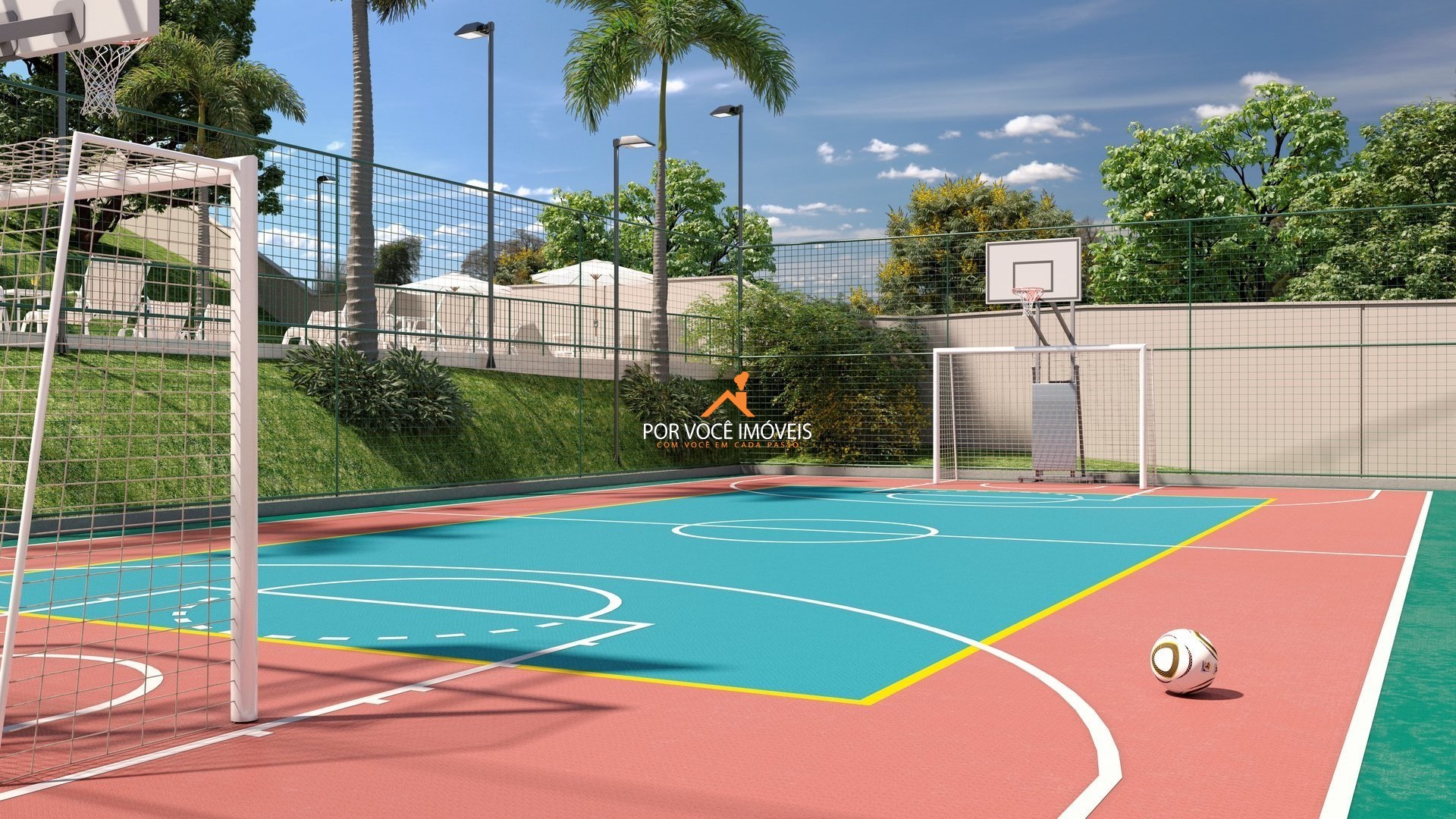 Quadras esportivas e playground