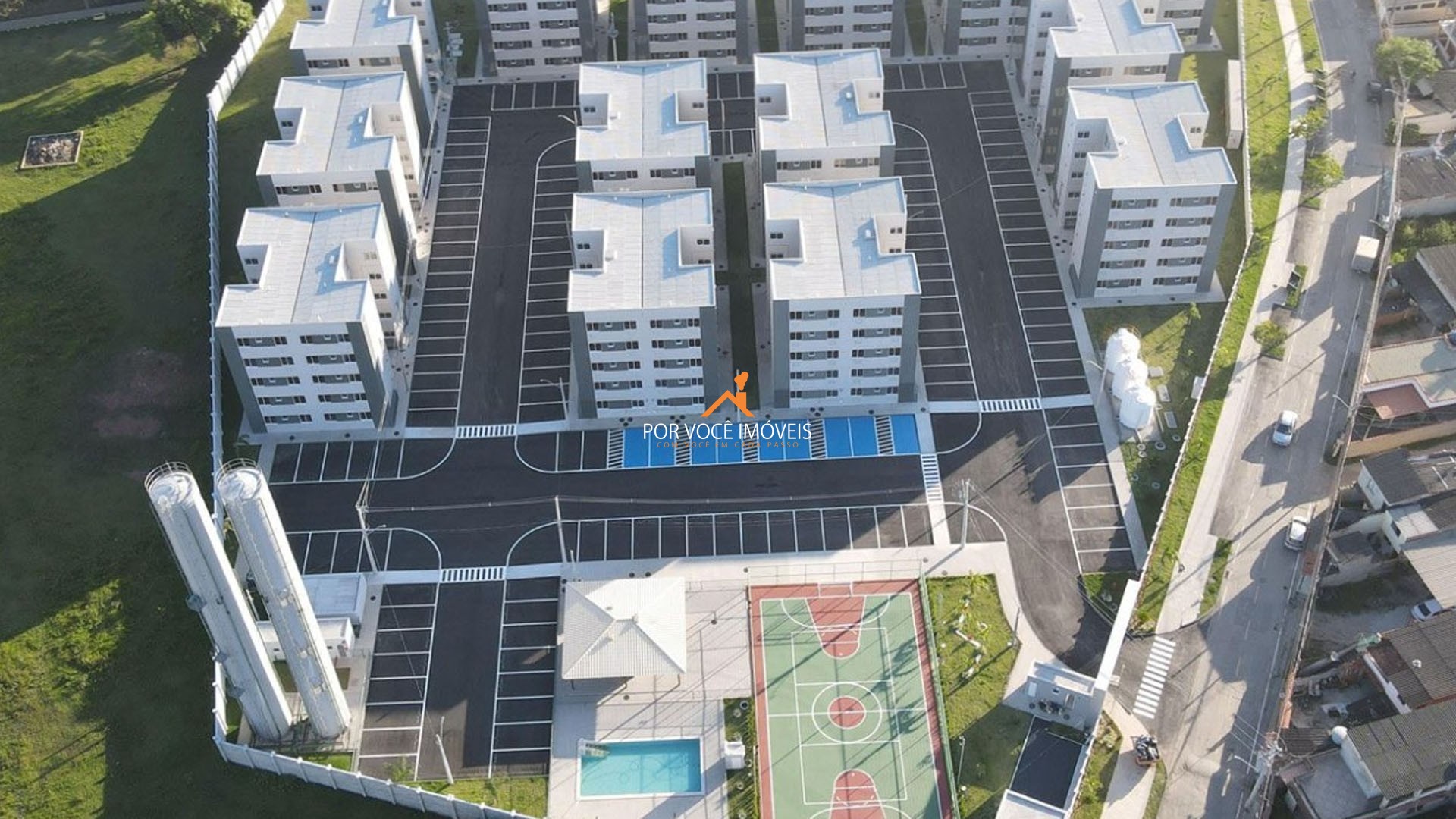 O condomínio conta com sistema de segurança, condomínio fechado, piscina comunitária, churrasqueiras, playground, quadra esportiva, estacionamento rotativo e permissão para animais.